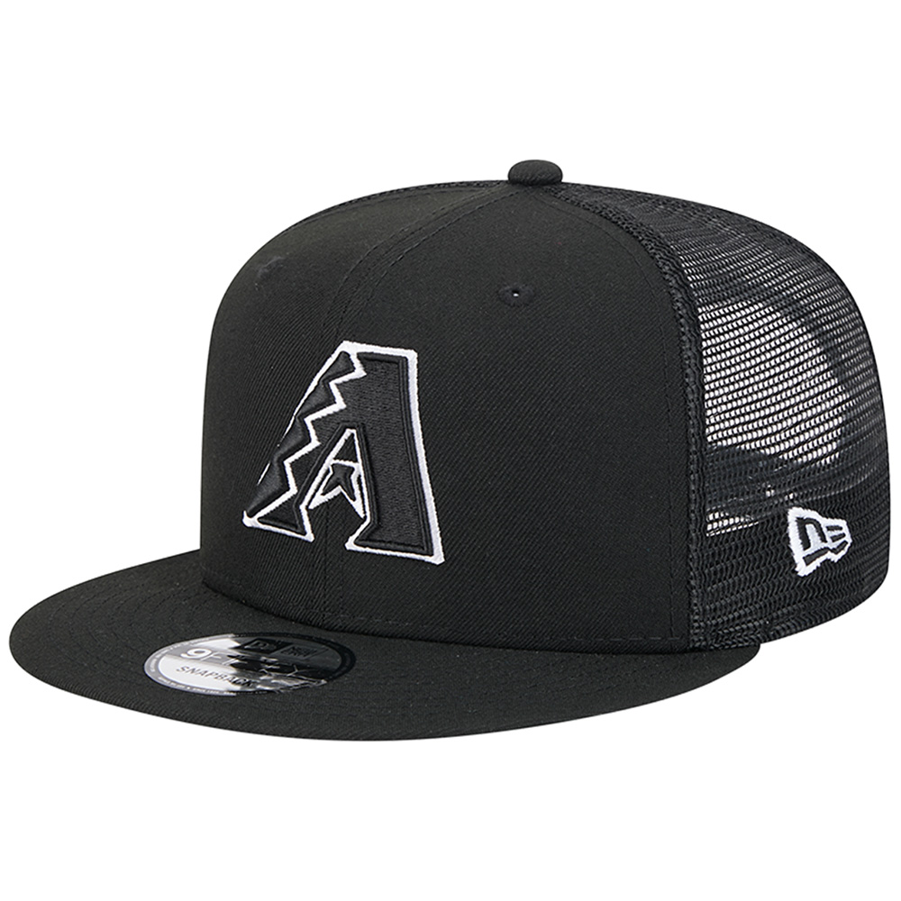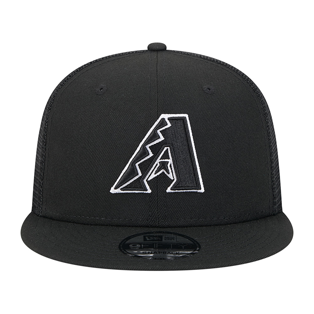 Put an elevated spin on your Arizona Diamondbacks fandom with this New Era 9FIFTY trucker hat. It features vibrant Arizona Diamondbacks embroidery on a solid black background to highlight your devotion loud and proud. The mesh panels provide breathability while the flat bill and high crown bring street-ready flair to your collection.