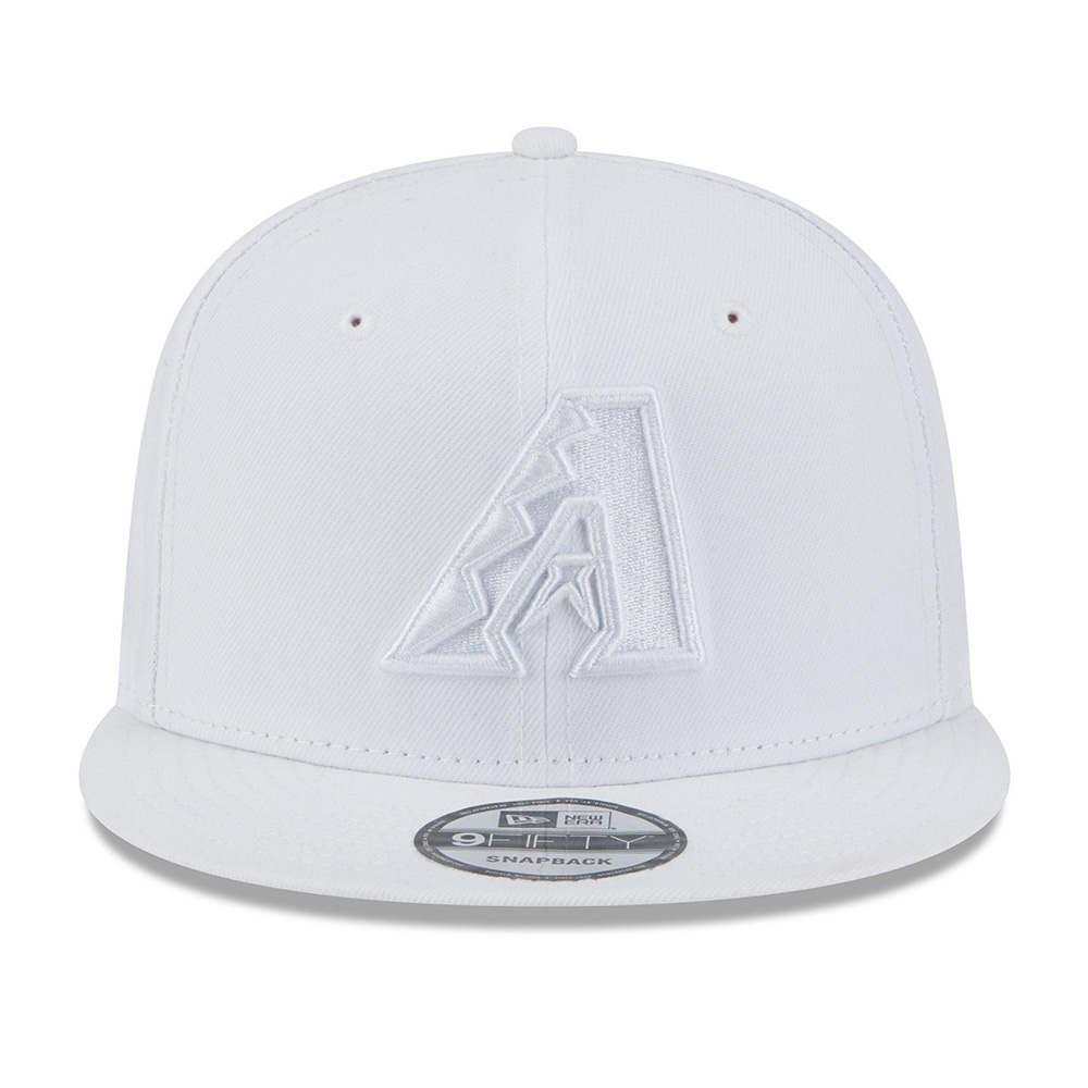 Rock a look that is as cold as ice on the next Arizona Diamondbacks game day with this Main White on White 9FIFTY Snapback hat from New Era. It features a sleek monochrome look and a team logo embroidered in raised details. The adjustable snap closure completes the design, making sure this Arizona Diamondbacks cap is a perfect fit every time you wear it.