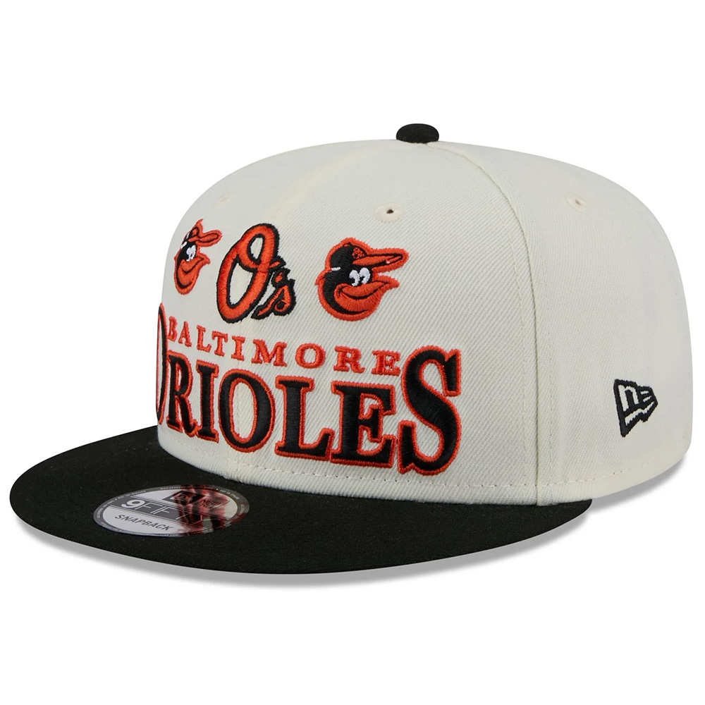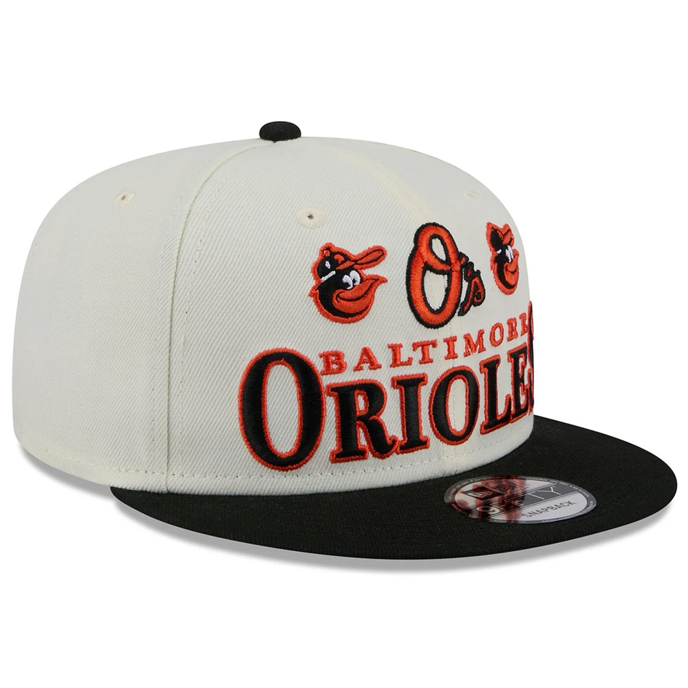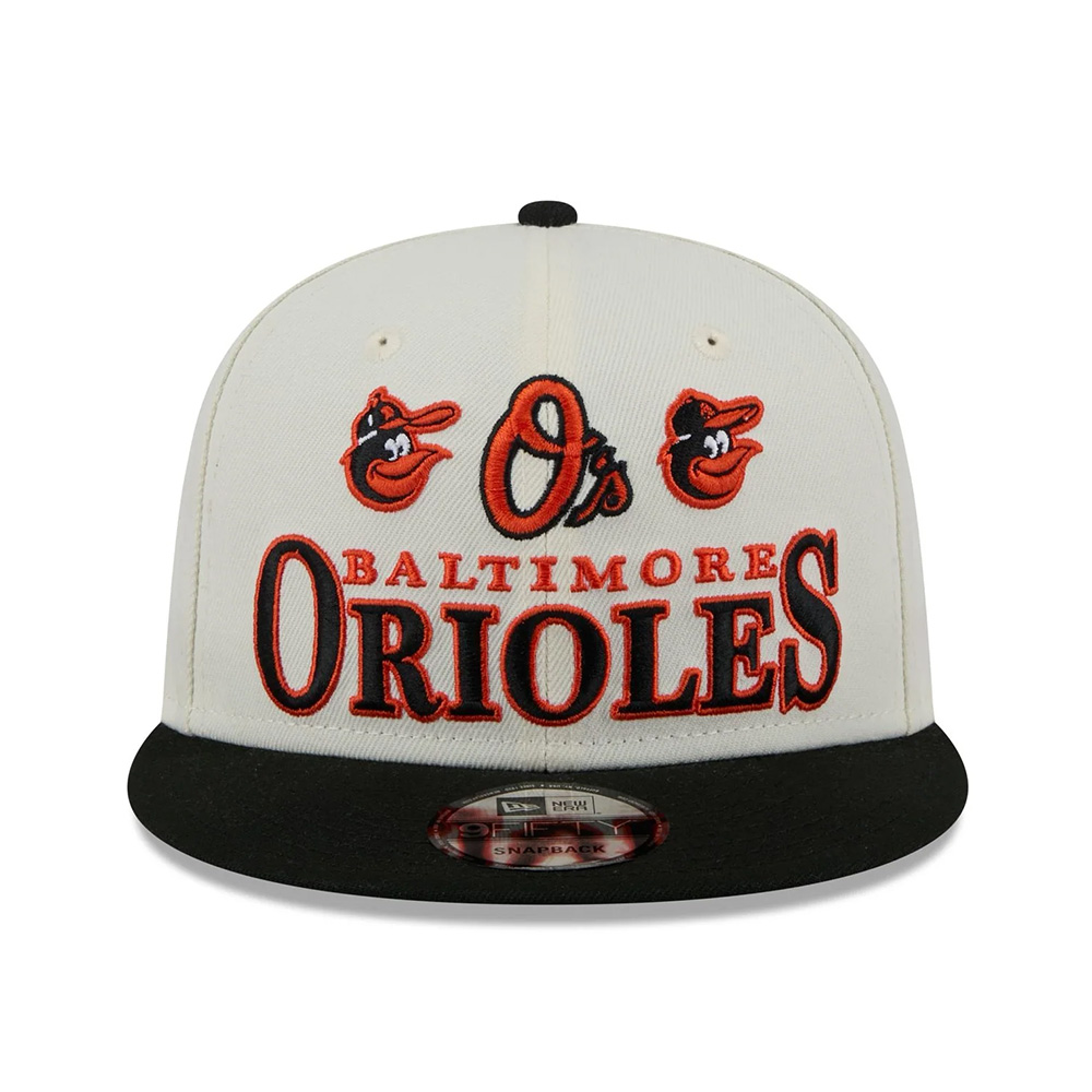 The Baltimore Orioles Archive 9FIFTY Snapback features an embroidered Orioles wordmark and various team logos at the front panels with a snapback closure at the rear and a gray undervisor. 2Tone colorway completes the look for this unique Baltimore Orioles cap.