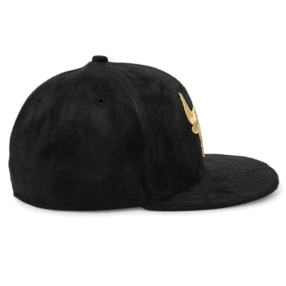 Sure, you have the regular cap to show off your allegiance to the Chicago Bulls, but what you are really wanting to find is that truly unique cap that blows the others out of the water. This 59FIFTY Black Suede Hat from New Era is that cap! It features a raised embroidered gold Chicago Bulls logo at the crown, gold new era logo at side and black suede throughout.