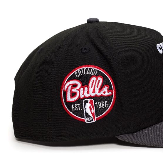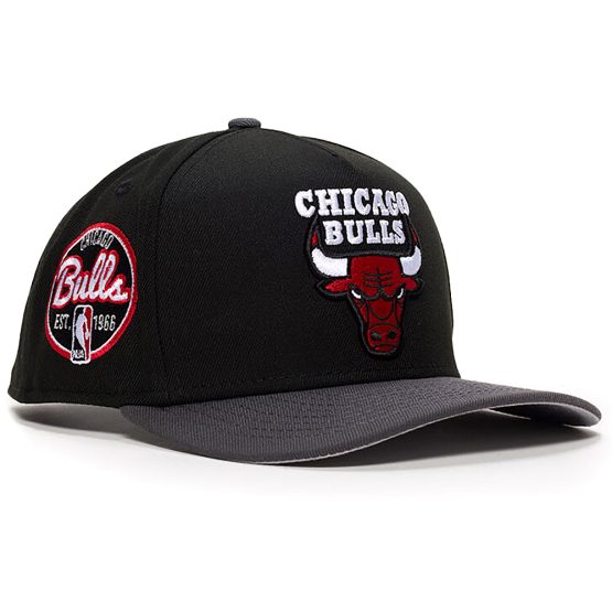 Rock this Chicago Bulls 9FIFTY A-Frame Adjustable Hat from New Era for a fresh take on classic team style. This Chicago Bulls hat boasts a structured fit and features a curved bill for a classic look. Its unique design includes raised Bulls logo embroidery on the front panels and 2tone black and grey colorway. Topped off with a commemorative Bulls Established 1966 side patch on the right-side crown, this hat is a must-have for any Bulls fan.