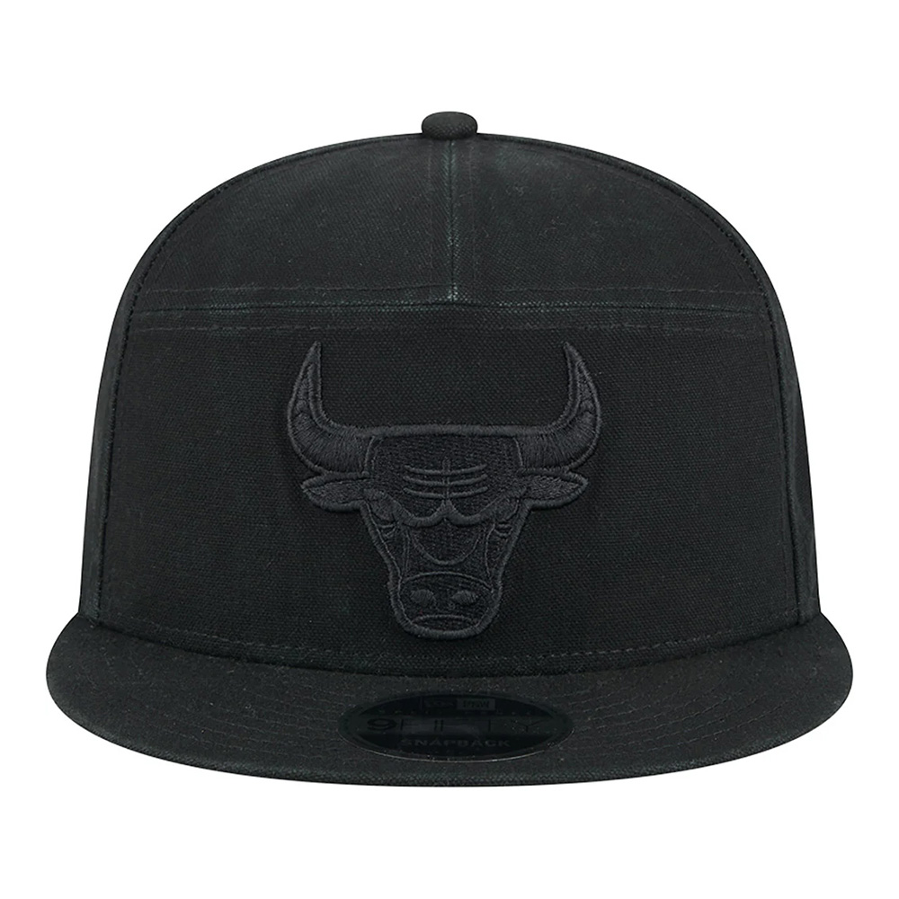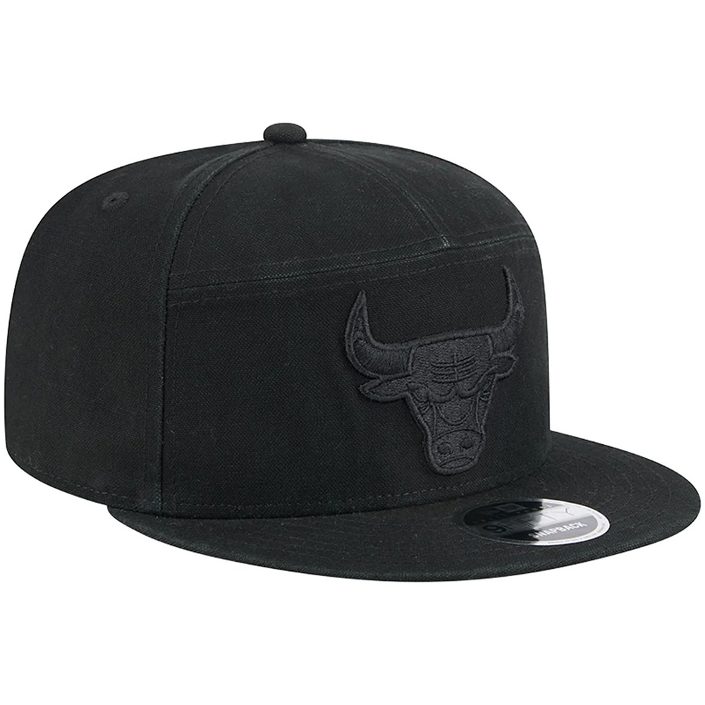 Show off your Chicago Bulls in style with this Black on Black Split Panel 9FIFTY Snapback Hat from New Era. This cap boasts a unique triple-panel front construction with vintage cotton canvas construction, turning heads and keeping you cool at the same time. The Chicago Bulls logo embroidered on the front includes raised details for some elevated class, making this the perfect choice for a night at the arena.