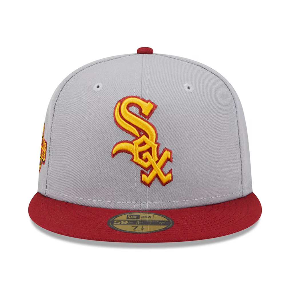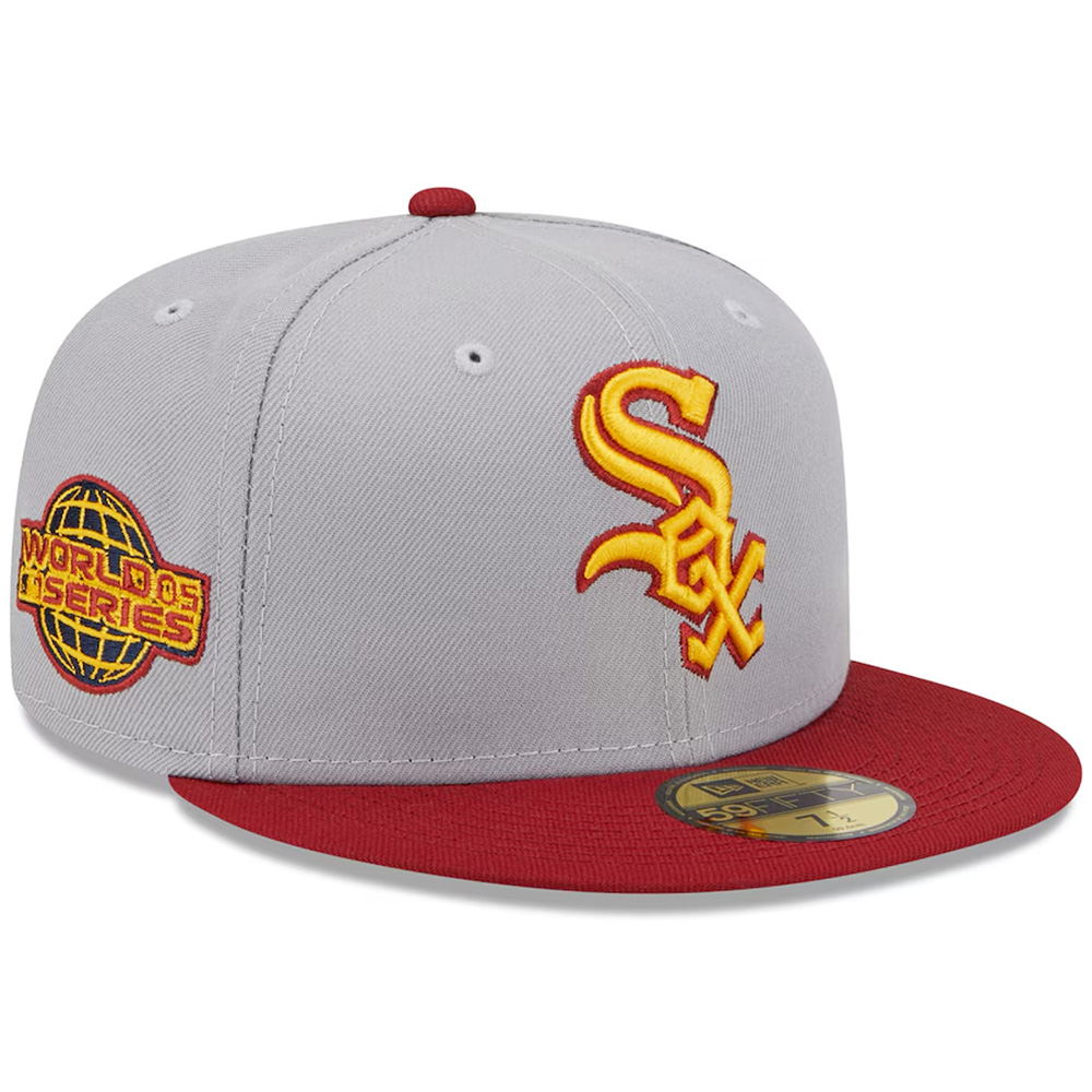 Sure, you have the regular cap to show off your allegiance to the Chicago White Sox, but what you are really wanting to find is that truly unique cap that blows the others out of the water. This Cooperstown 59FIFTY 2005 World Series side patch Fitted Hat from New Era is that cap! It features embroidered Chicago White Sox graphics as well as special 2005 World Series graphics with a 2tone grey/red colorway.