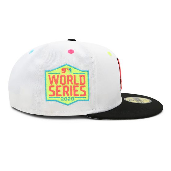 Celebrate an iconic moment in Los Angeles Dodgers history with this 2020 World Series Champions 59FIFTY hat from New Era. It features an embroidered 2020 WS Champs side patch and classic team graphics on the front that immediately make your fandom loud and clear. The high crown and flat bill on this fitted cap are everything you would want in an iconic baseball piece, making this the perfect option to represent the Los Angeles Dodgers on game day.