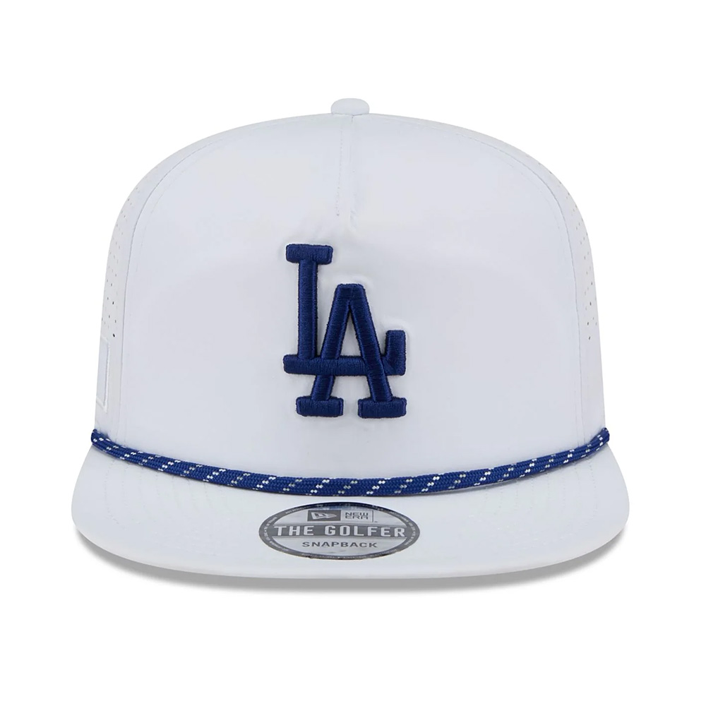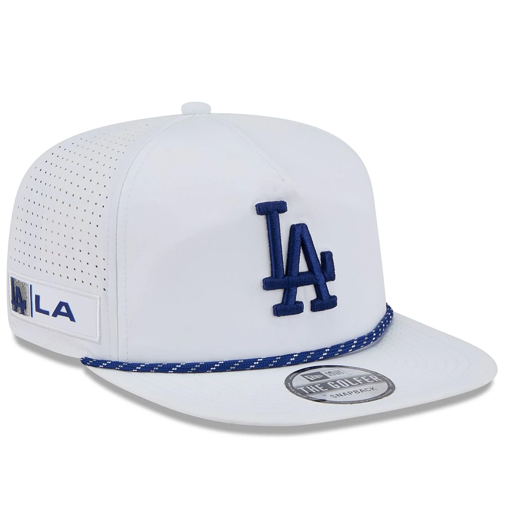 The Los Angeles Dodgers are ready to swing for the fences this season, and you can show your support with this stylish New Era Perforated Golfer Adjustable Hat. This semi-structured cap features a retro look with its pinched crown and flat visor, reminiscent of classic snapbacks from the 80s and 90s. The embroidered Los Angeles Dodgers logo on the front panel pops with raised details, while the perforated mid and rear panels provide breathable comfort for those hot game days.