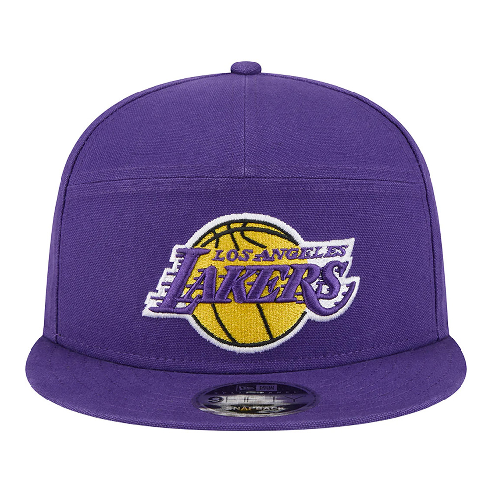 Show off your Los Angeles Lakers in style with this Cotton Canvas Split Panel 9FIFTY Snapback Hat from New Era. This cap boasts a unique triple-panel front construction with vintage cotton canvas construction, turning heads and keeping you cool at the same time. The Los Angeles Lakers logo embroidered on the front includes raised details for some elevated class, making this the perfect choice for a night at the arena.