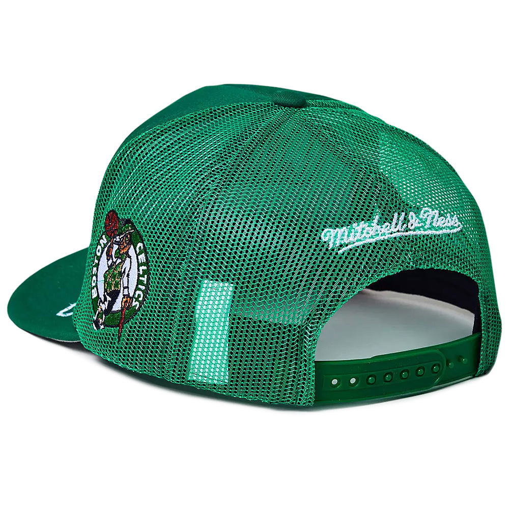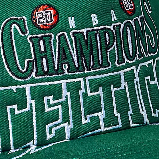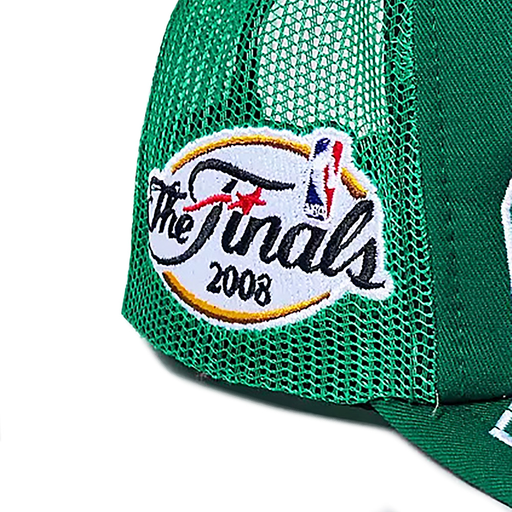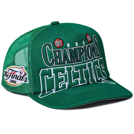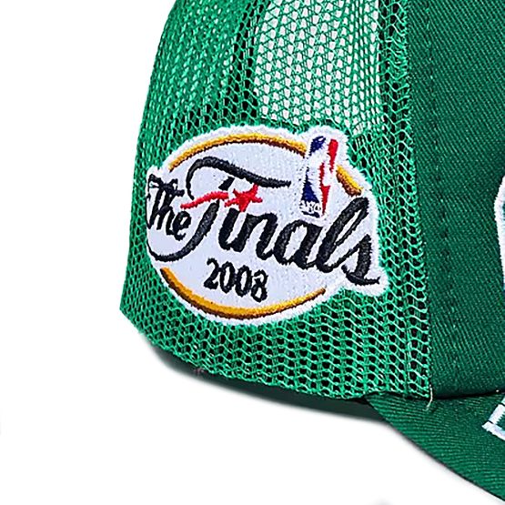 Boast about the winning history of your Boston Celtics with this 2008 NBA Finals Champions trucker hat from Mitchell & Ness. It features a full front crown Boston Celtics 2008 NBA Finals champs embroidered graphics, 2008 Finals side patch and a Celtics logo embroidered at right. Green colorway and mesh mid and rear panels complete the look and will make sure you stand out as a proud Boston fan.