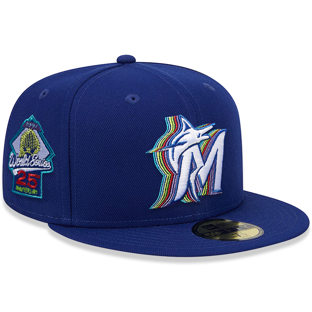 Upgrade your headwear game by grabbing this Miami Marlins 59FIFTY Cooperstown 1997 World Series Anniversary cap from New Era. Highlighting your loyalty to the team will be super easy thanks to the distinctive Miami Marlins graphics embroidered on the crown and a special 1997 World Series (25th Anniversary) patch on the side. The fitted construction will ensure you have a comfortable fit all day long.