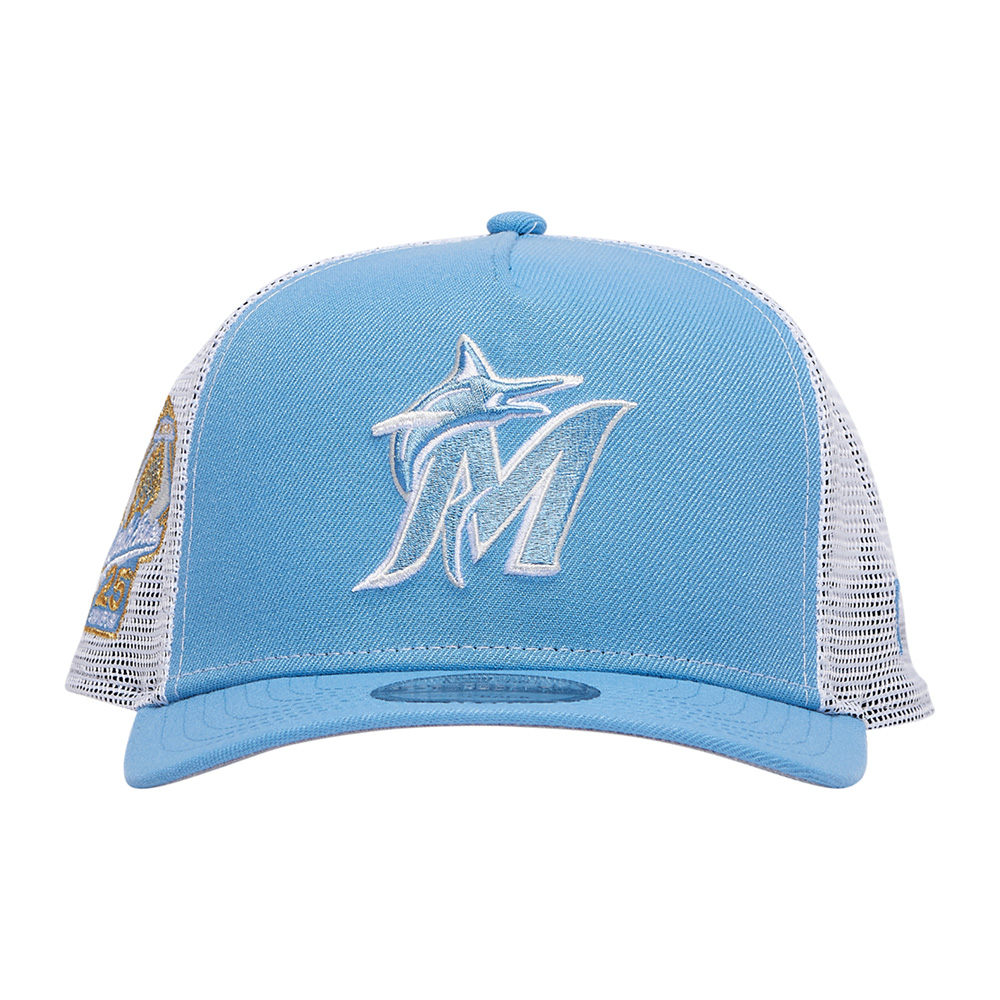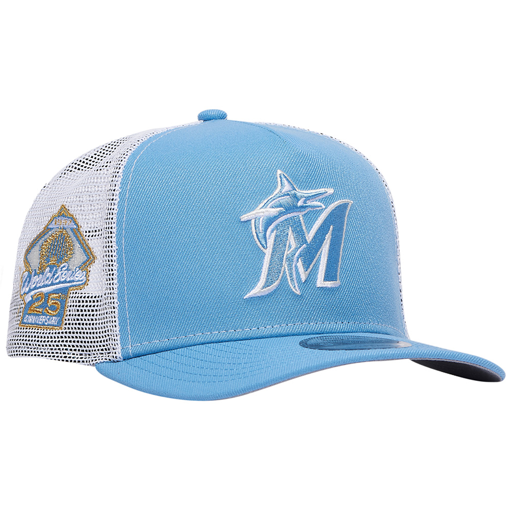 Sure, you have the regular cap to show off your allegiance to the Miami Marlins, but what you are really wanting to find is that truly unique cap that blows the others out of the water. This 25th Anniversary 1997 World Series Gold Side Patch 9FIFTY Cooperstown Trucker Snapback Hat from New Era is that cap! It features raised embroidered Miami Marlins graphics as well as a special golden 1997 World Series Champions side patch.
