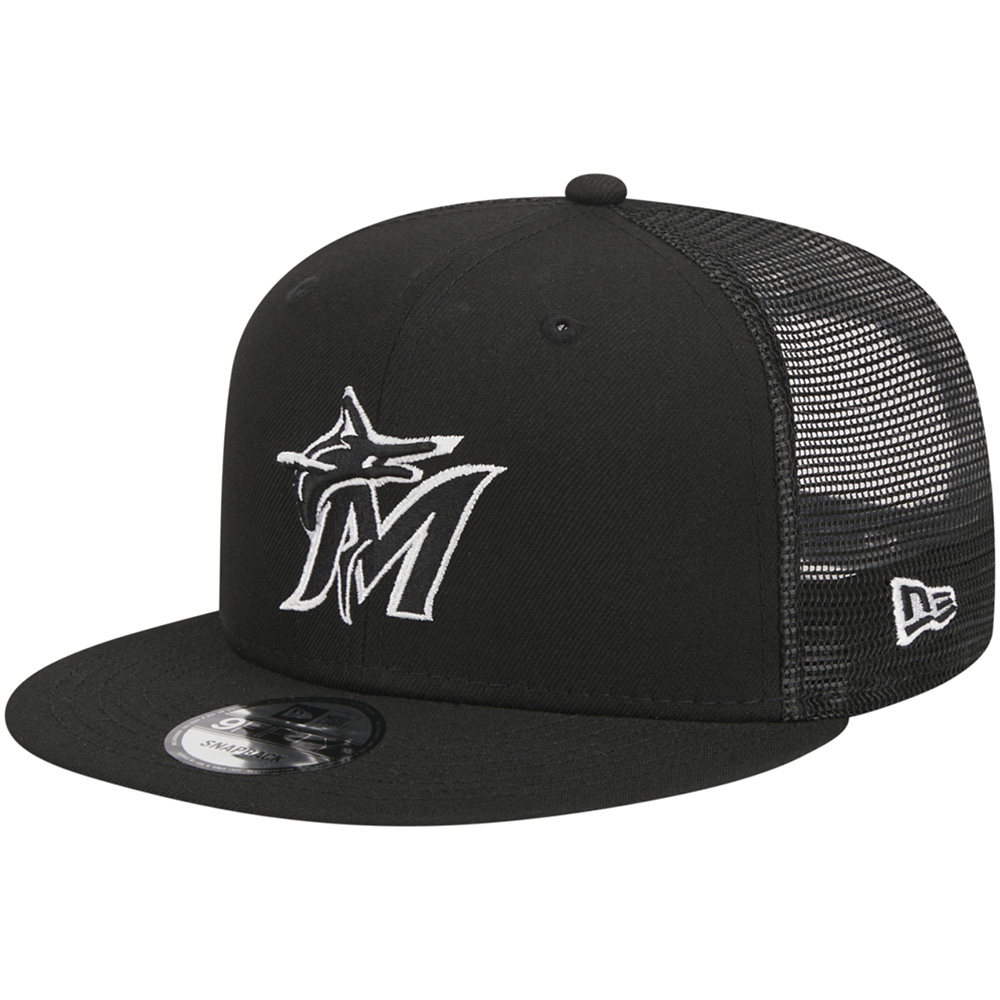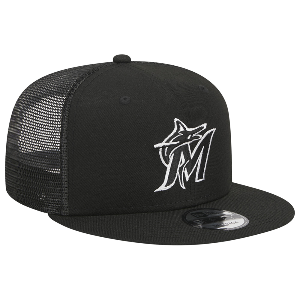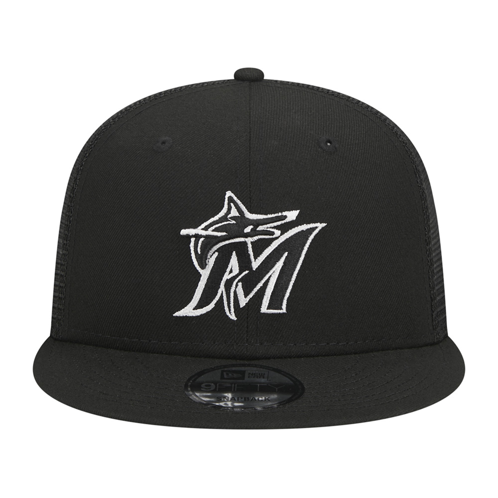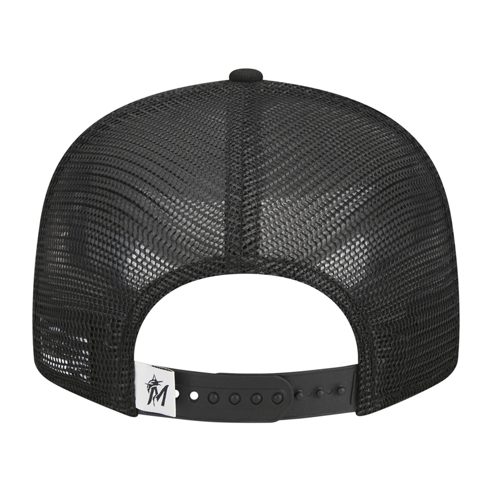 Put an elevated spin on your Miami Marlins fandom with this New Era 9FIFTY trucker hat. It features vibrant Miami Marlins embroidery on a solid black background to highlight your devotion loud and proud. The mesh panels provide breathability while the flat bill and high crown bring street-ready flair to your collection.