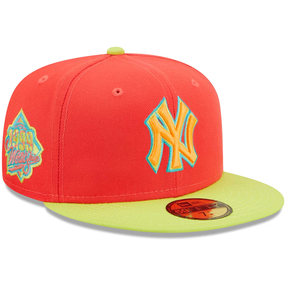 Sure, you have the regular cap to show off your allegiance to the New York Yankees, but what you are really wanting to find is that truly unique cap that blows the others out of the water. This Cooperstown 59FIFTY 1999 World Series side patch Fitted Hat from New Era is that cap! It features embroidered New York Yankees graphics as well as special 1999 World Series graphics with a 2tone grey/red colorway.