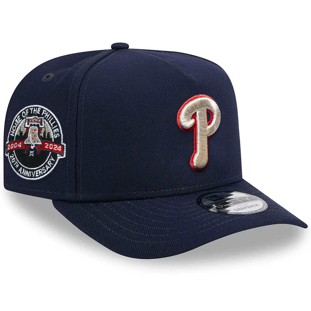 Upgrade your headwear game by grabbing this Philadelphia Phillies 20th Anniversary (2004-2024) 9FIFTY A-Frame cap from New Era. Highlighting your loyalty to the team will be super easy thanks to the distinctive Philadelphia Phillies graphics embroidered on the crown and a special 20th Anniversary Home of the Phillies patch on the side. The snapback construction will ensure you have a comfortable fit all day long.