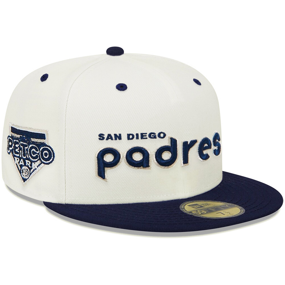 Sure, you have the regular cap to show off your allegiance to the San Diego Padres, but what you are really wanting to find is that truly unique cap that blows the others out of the water. This Cooperstown 59FIFTY Petco Park side patch Fitted Hat from New Era is that cap! It features a San Diego Padres logo at the crown, SD Petco Park Side patch as well as a 2tone colorway and contrast grey underbill.