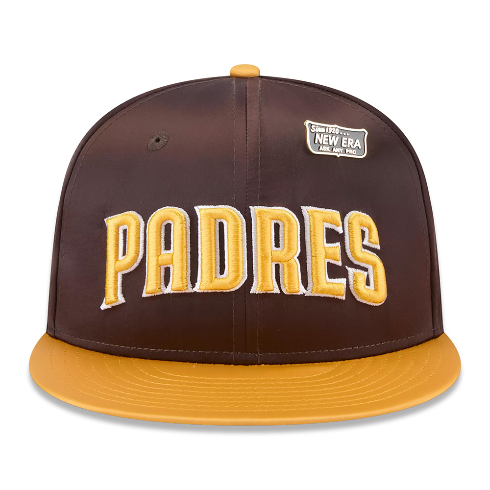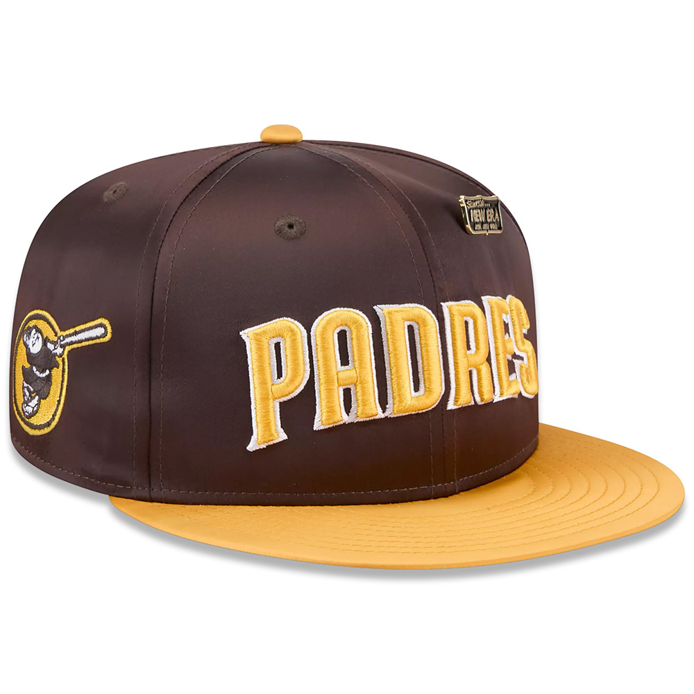 Complete your San Diego Padres game day look with this sharp, Satin 59FIFTY Fitted Hat from New Era. This stylish hat features a satin crown with an embroidered San Diego Padres wordmark on the front panels to give your game day ensemble a touch of elegance. The high crown and structured fit provide a classic and comfortable feel, while the Padres logo on the right-side panel offer a double dose of team spirit.