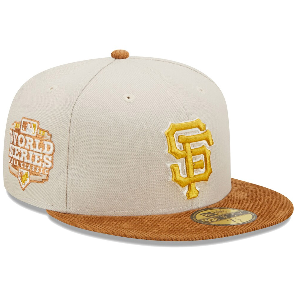 Highlight your appreciation for your San Francisco Giants in style by adding this bold 59FIFTY 2012 World Series Champions fitted hat from New Era to your gear collection. Gold San Francisco Giants graphics embroidered on the front panels and 2012 Fall Classic WS Champs side patch serve as a brilliant focal point in any spirited ensemble. The corduroy visor also offers a unique twist on your fandom, giving you a standout look that is sure to hit hard when it is go time.