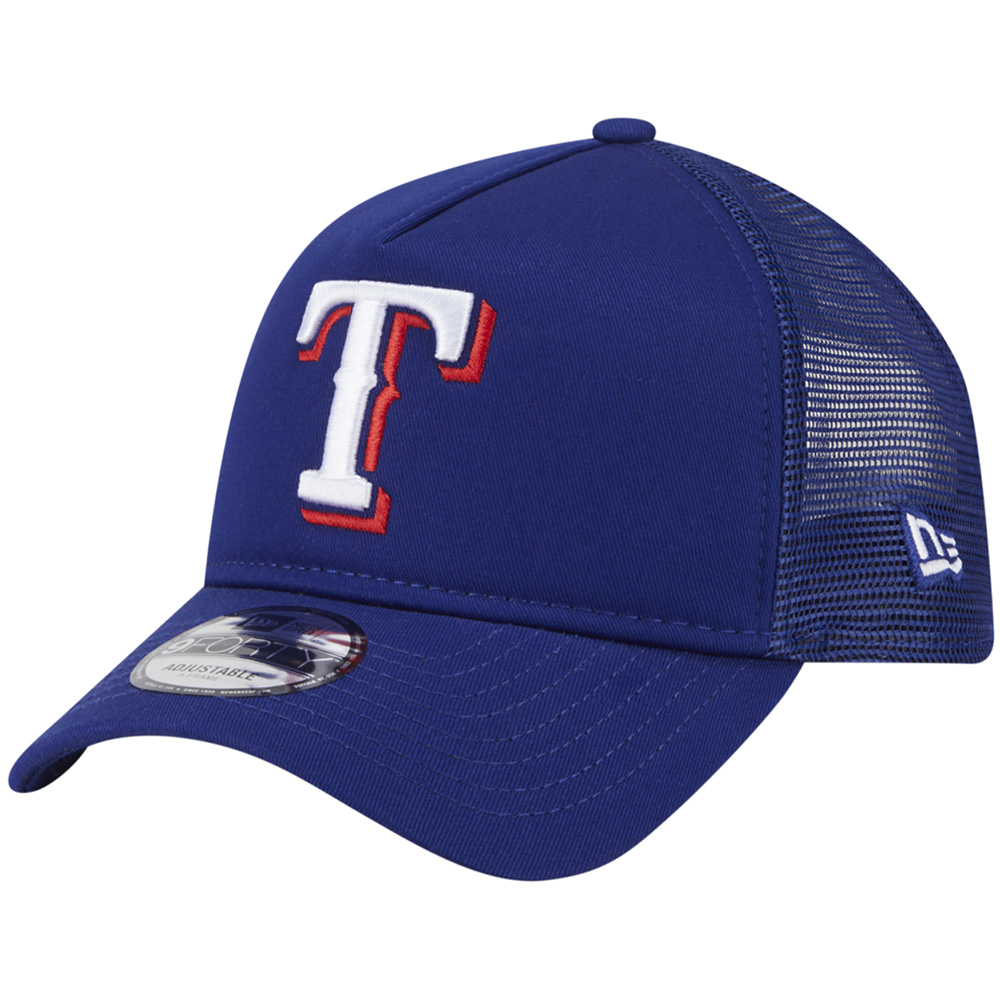 Step up your Texas Rangers game with this New Era 9FORTY A-Frame Trucker Adjustable Hat. This 9FORTY A-Frame hat features a unique design that merges the front two crown panels into one, creating a high-profile pinched shape for an unmistakable look. With embroidered graphics that pop with raised details, this Houston Texas Rangers hat ensures your fandom takes center stage.